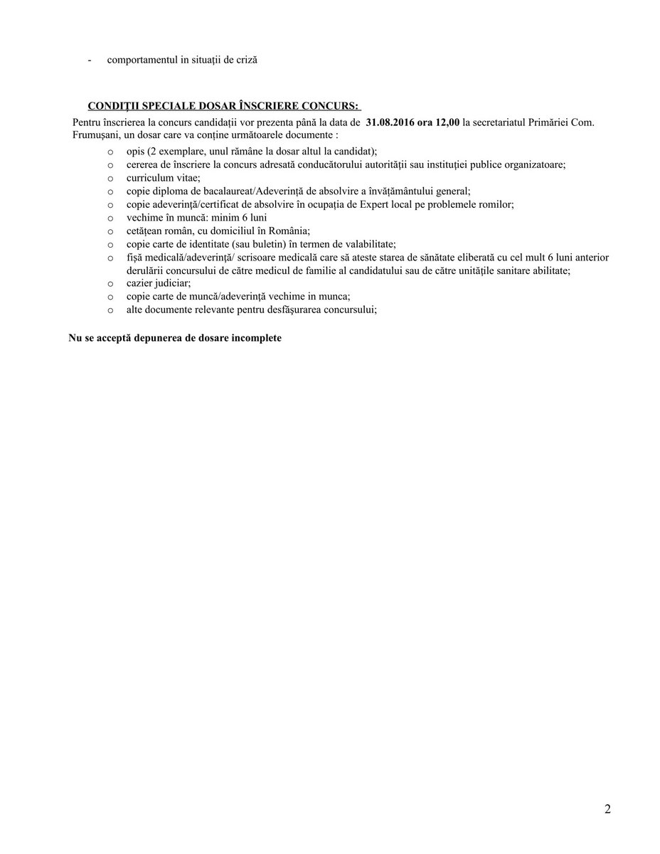 concursuri 12 August 2016 Hits: 2618 Anunt concurs - 1 post Expert local pentru Romi Print Email PDF Prev Next