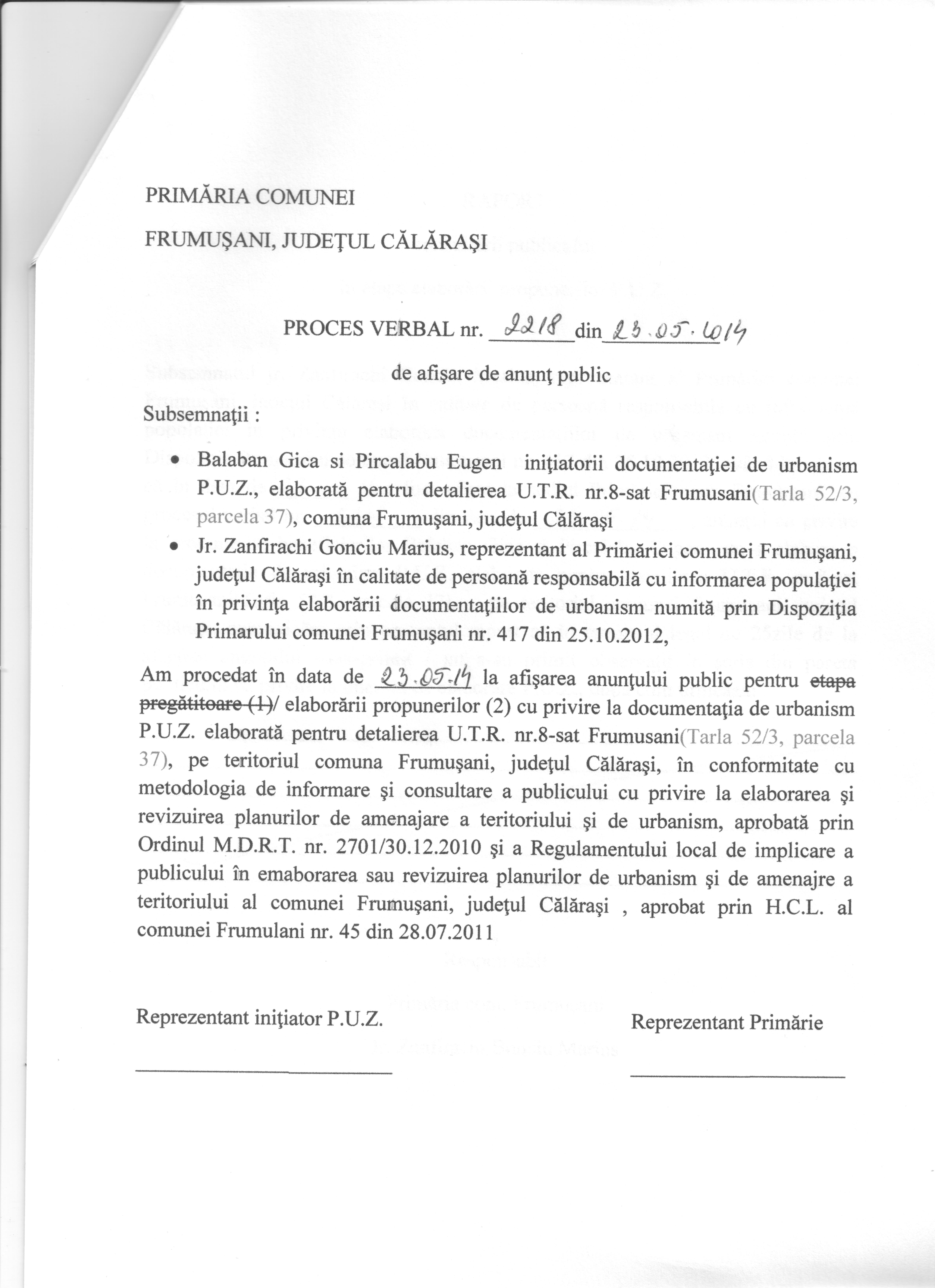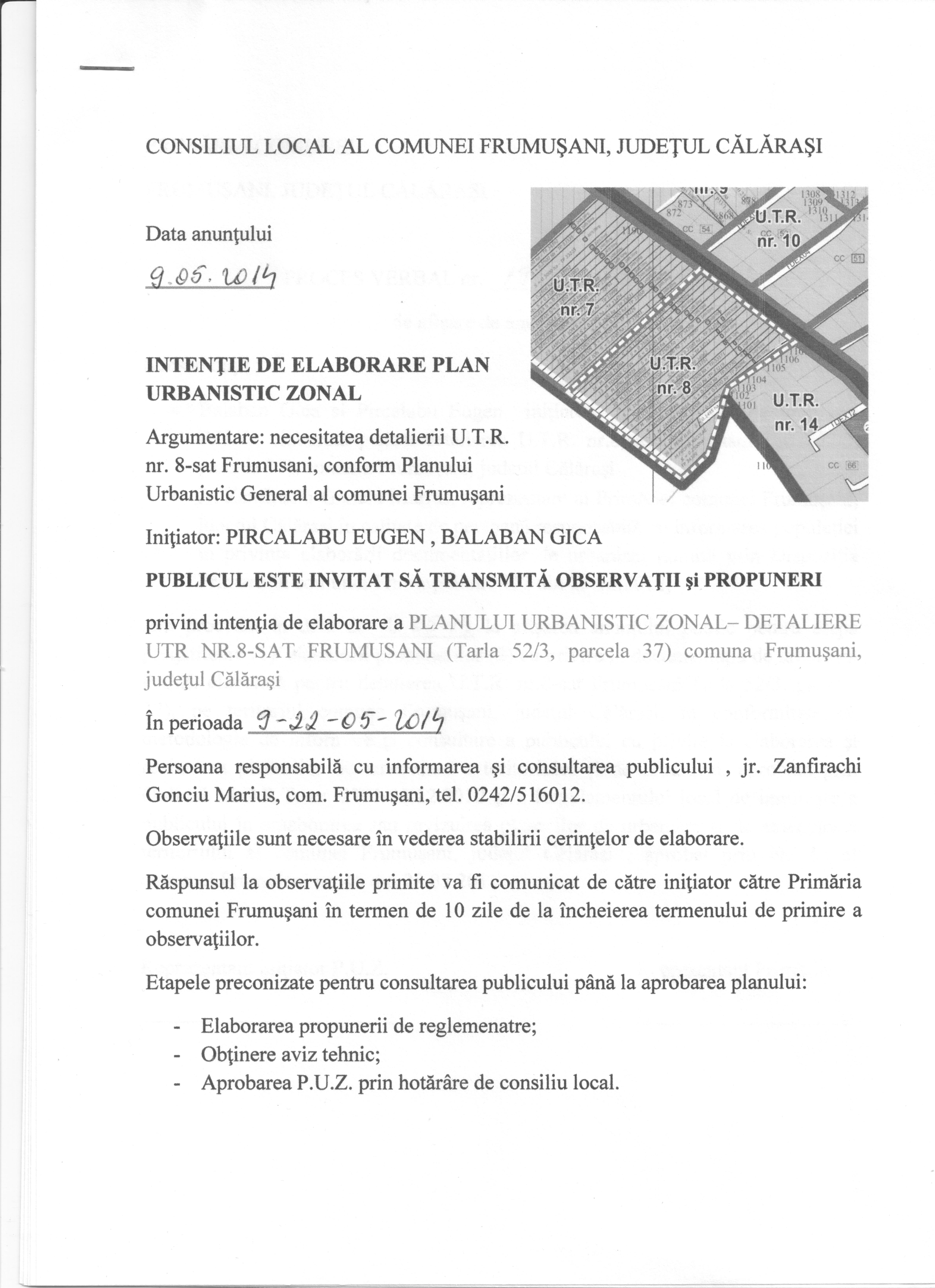.Proiect de hotarare privind aprobare P.U.Z. „DETALIERE UTR 1 – SAT POSTAVARI” teren intravilan situat in