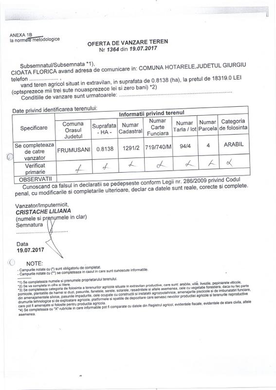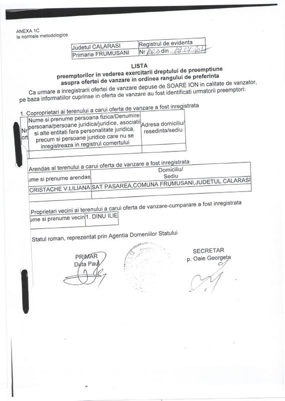 Publicații si oferte Legea nr.17 - extravilan Registrul agricol 25 July 2017 Hits: 1673 Oferta vanzare teren si lista preemptori 19-07-2017 Print Email PDF Oferta vanzare teren si lista preemptori 19-07-2017 Prev Next