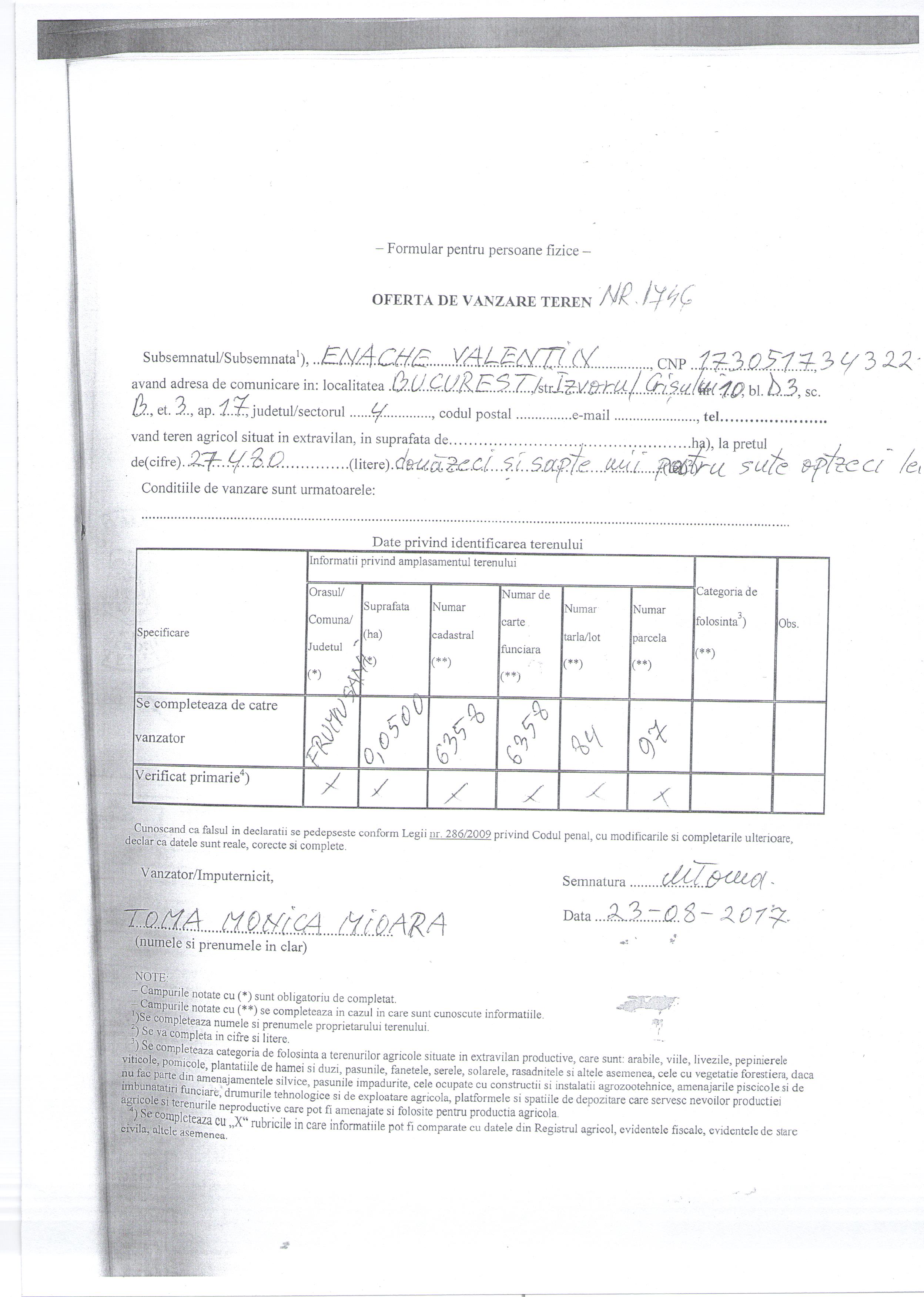 Publicații si oferte Legea nr.17 - extravilan Registrul agricol 25 August 2017 Hits: 1748 Oferta vanzare teren si lista preemptori 23-08-2017 Print Email PDF Oferta vanzare teren si lista preemptori 23-08-2017 Prev Next