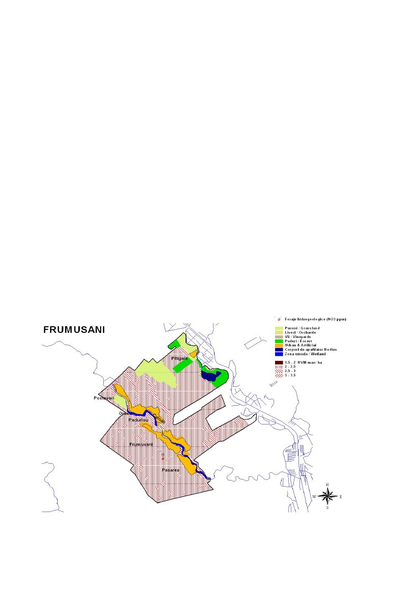 potential vulnerabile la poluarea cu nitrati rezulta o incarcare medie acceptabila la nivelul comunei de 2.47 UVM ha-1 an-1 ceea ce corespunde unor cantitati de azot din ingrasaminte organice de