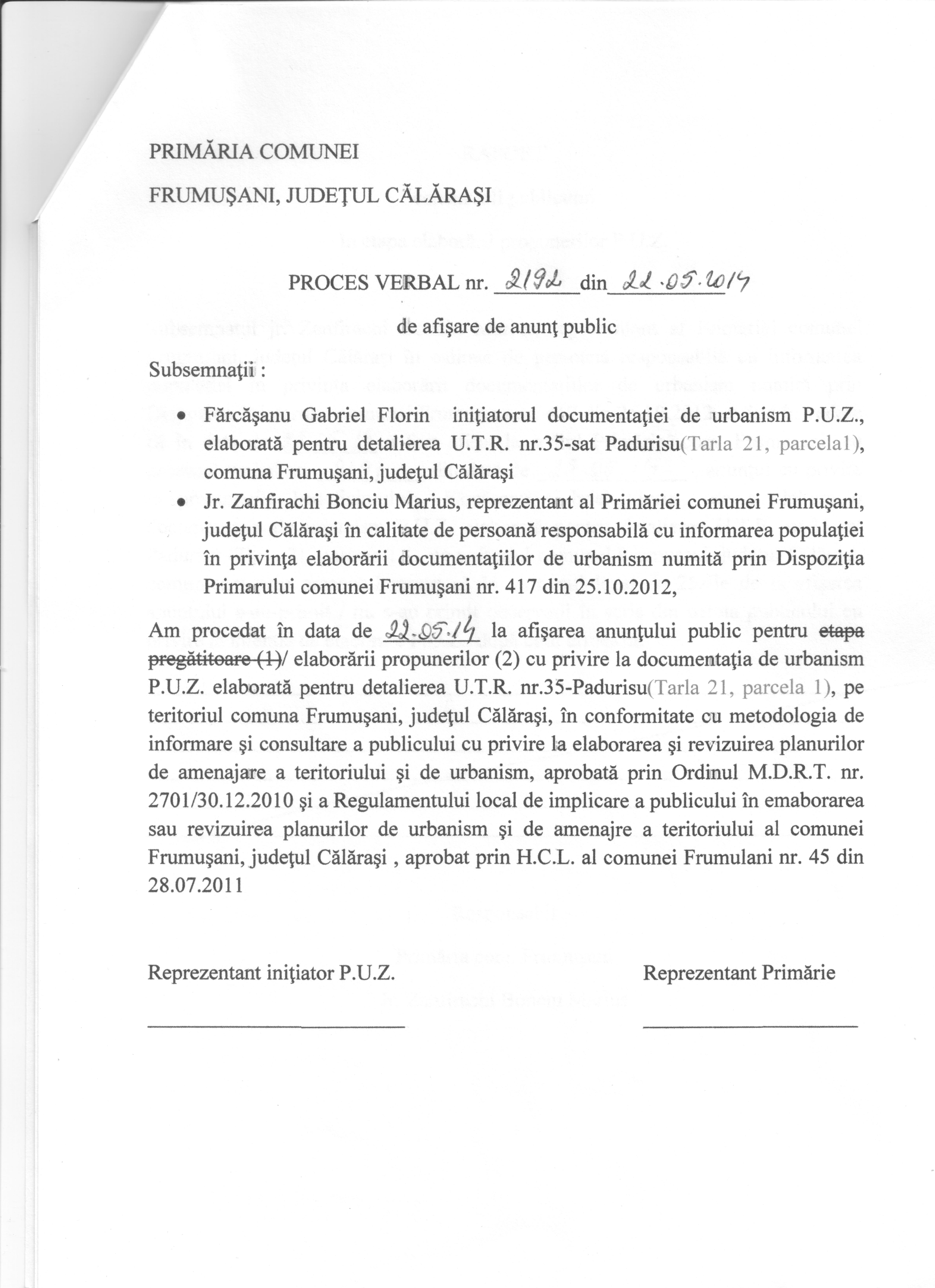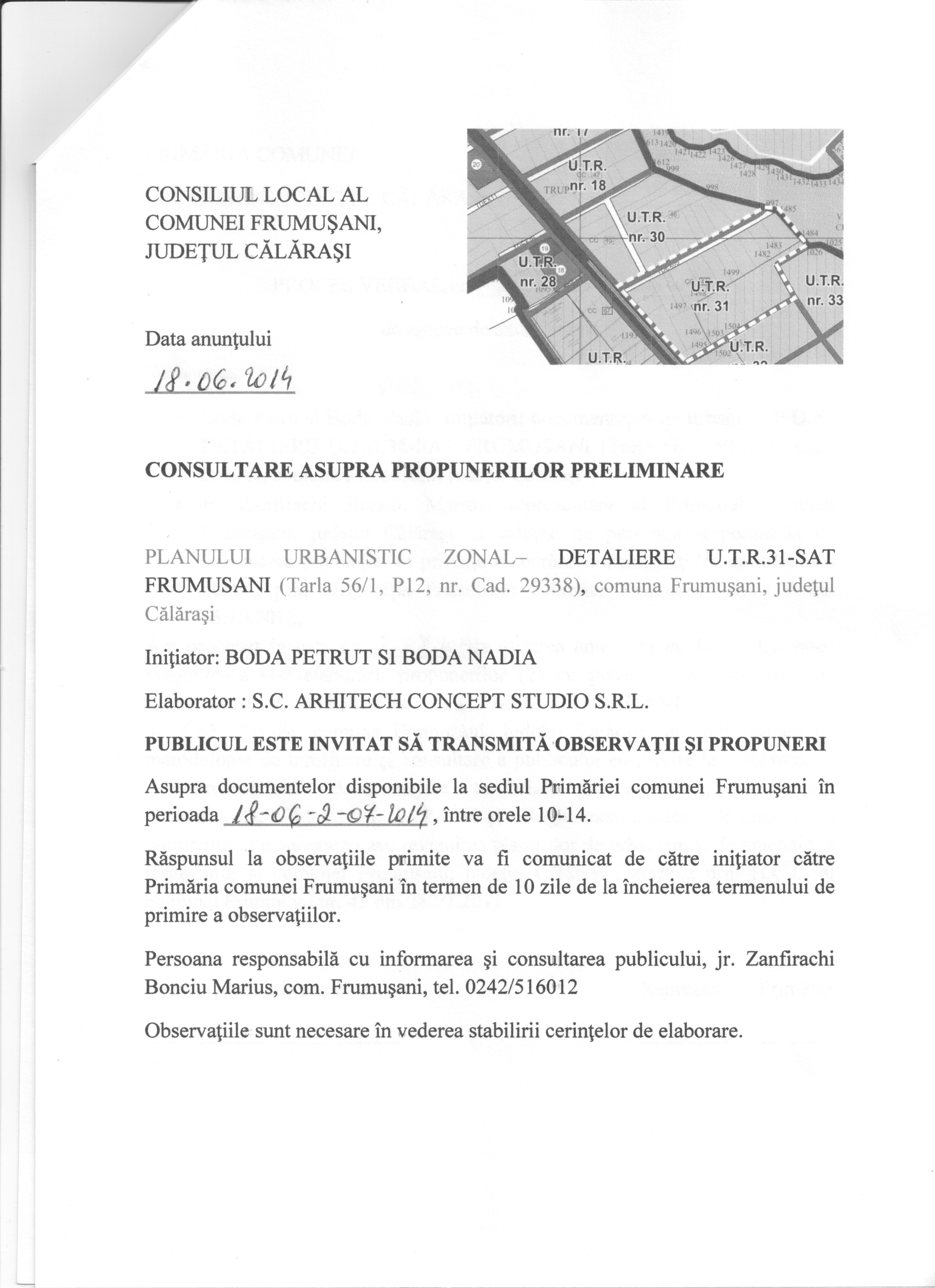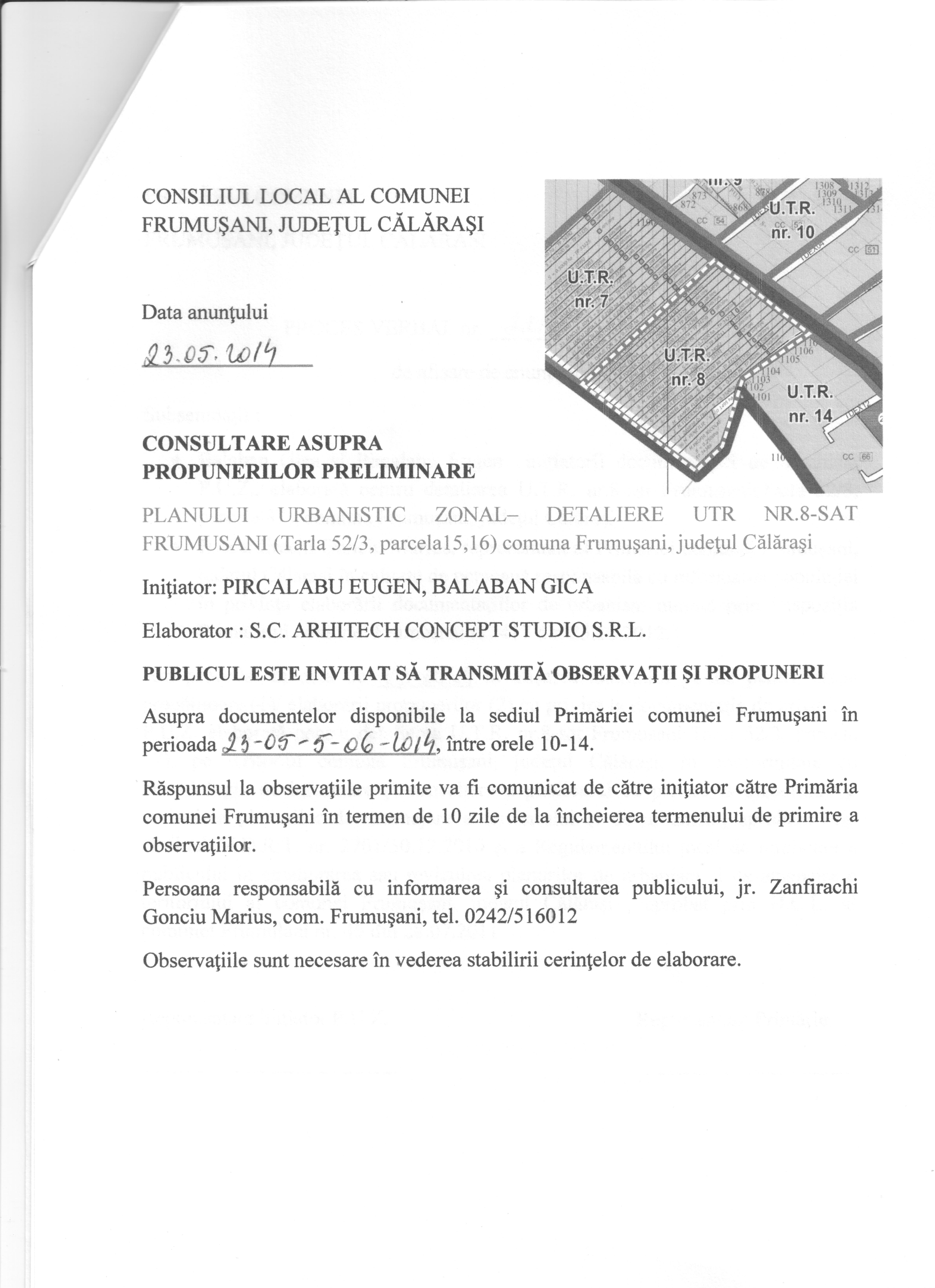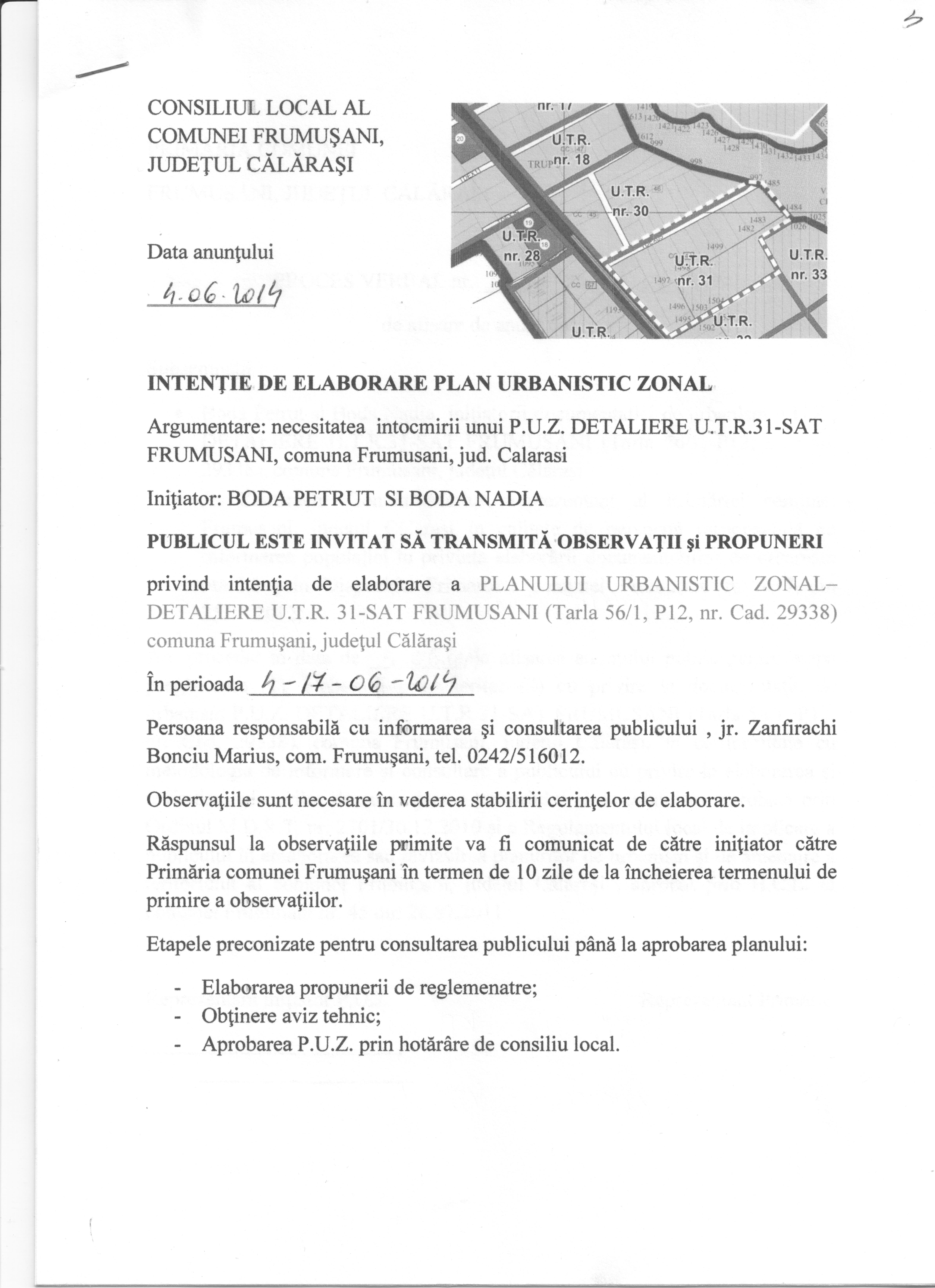 .Proiect de hotarare privind aprobare P.U.Z. „DETALIERE UTR 1 – SAT POSTAVARI” teren intravilan situat in
