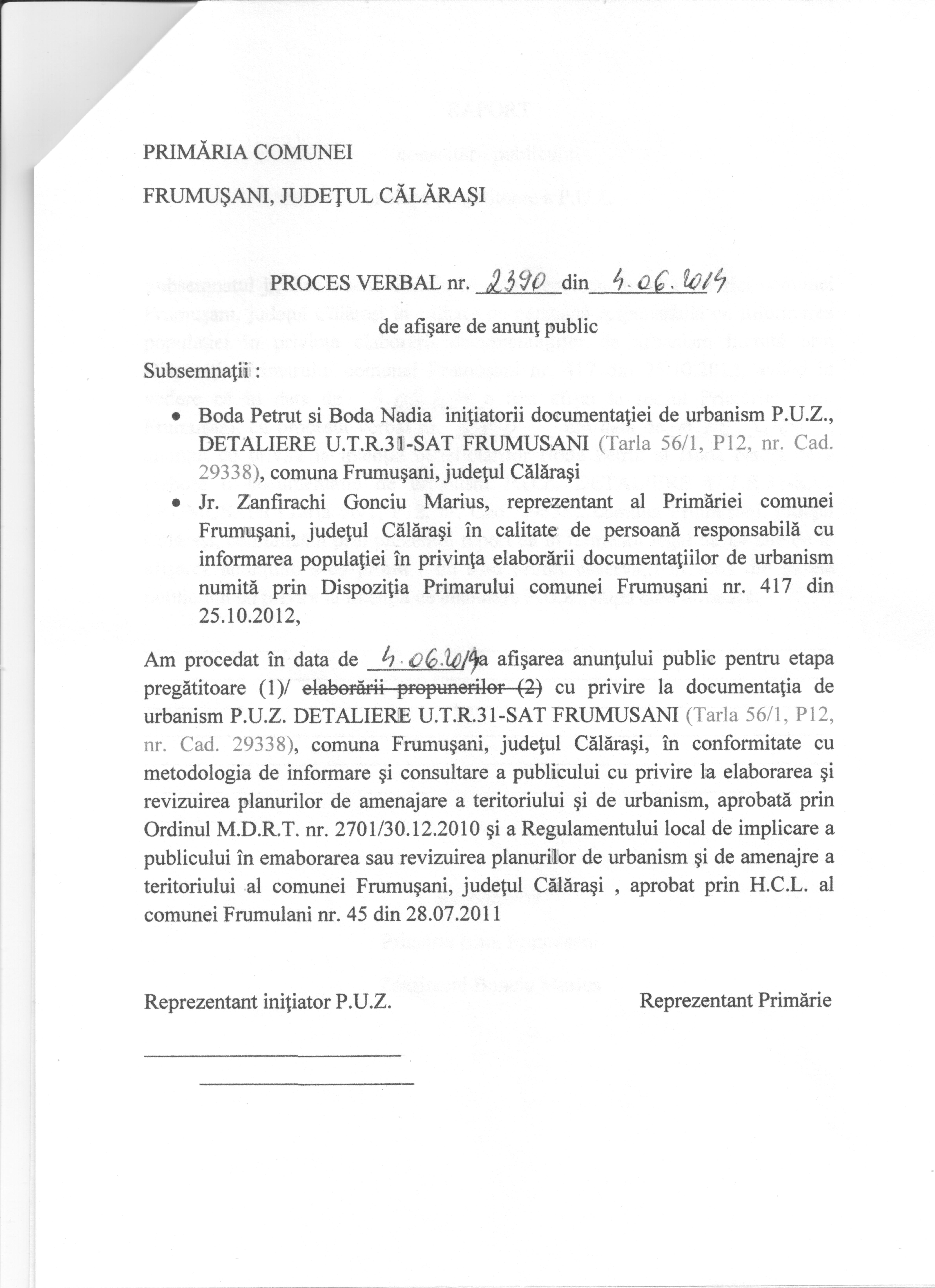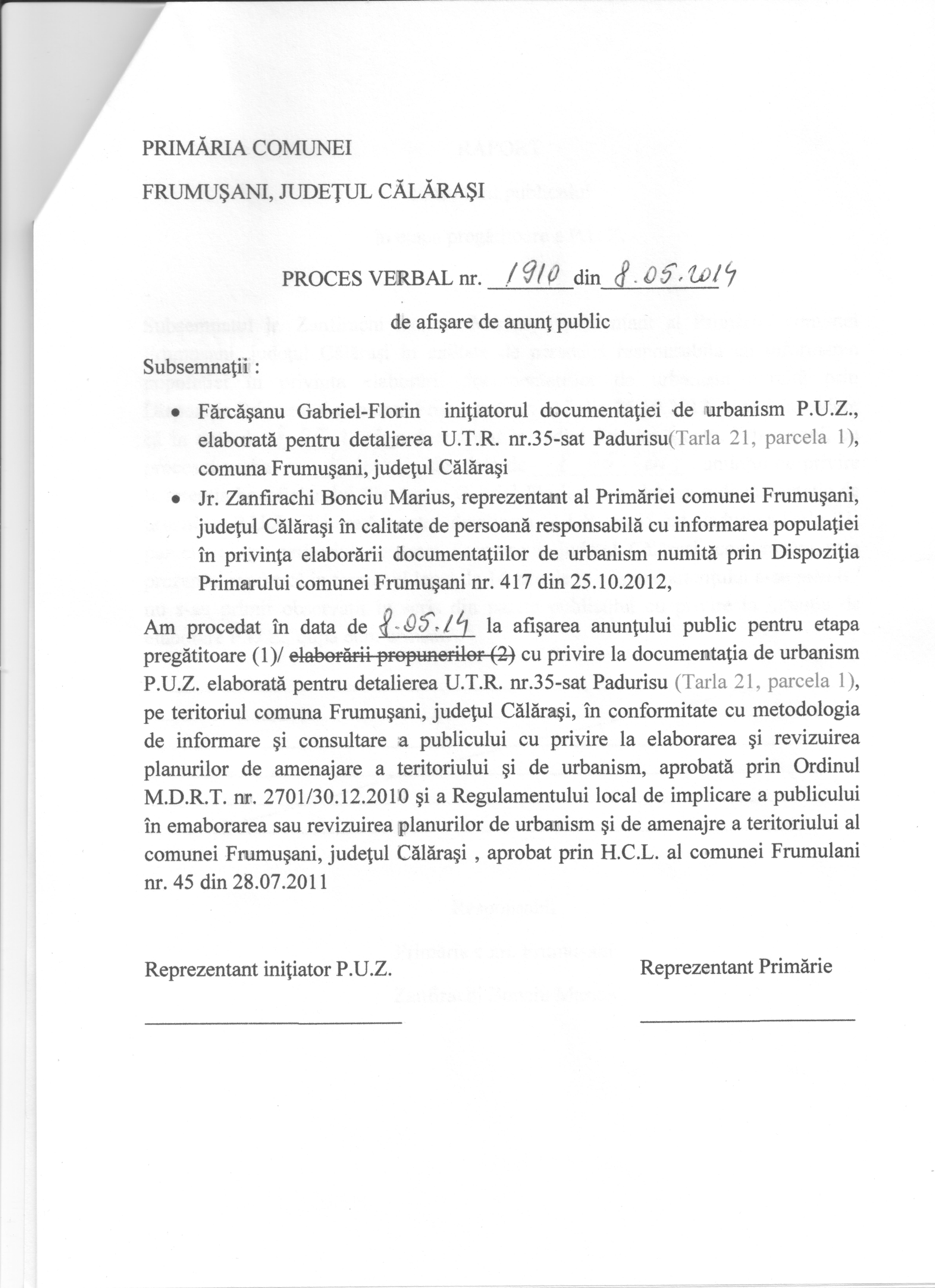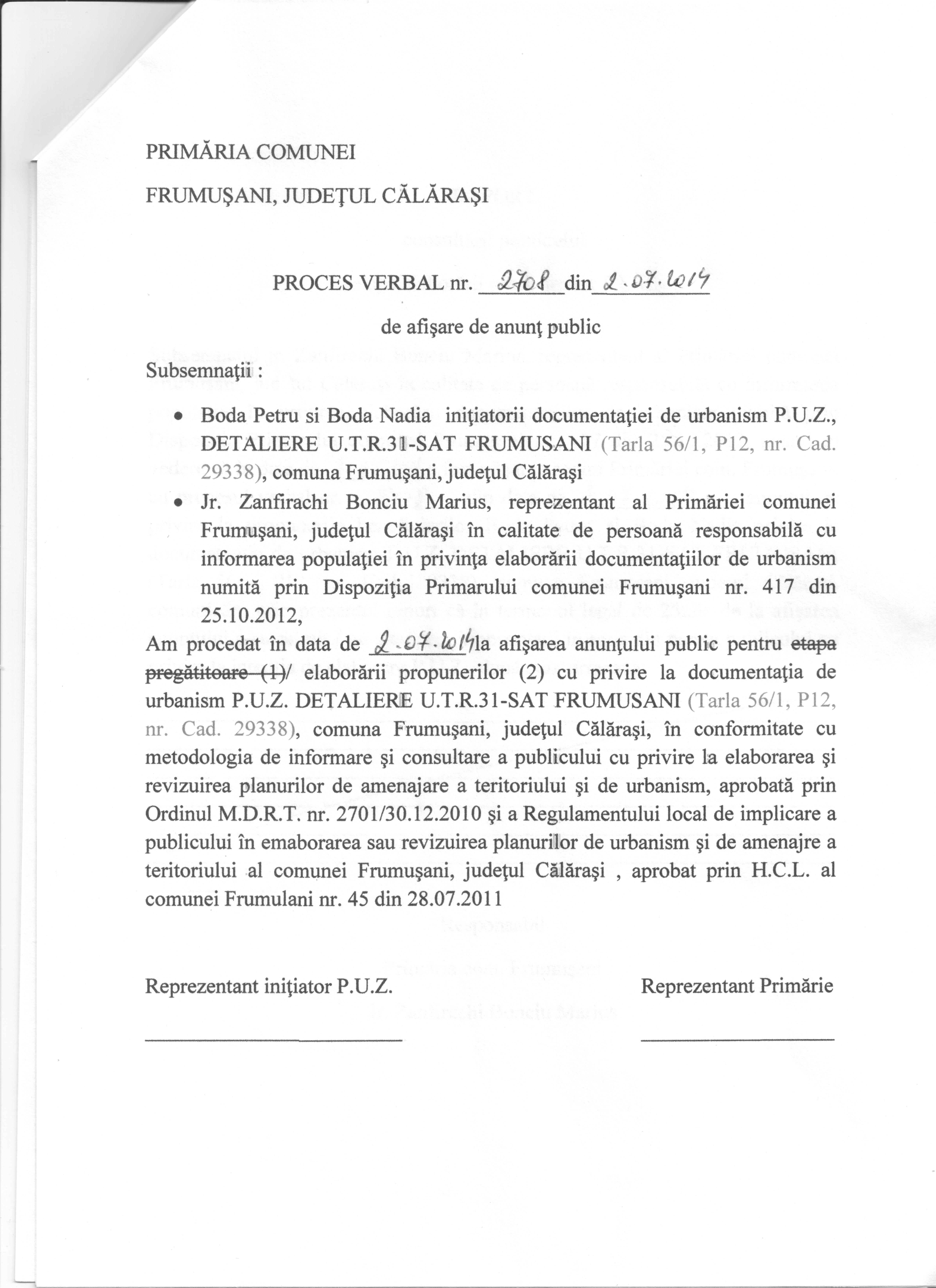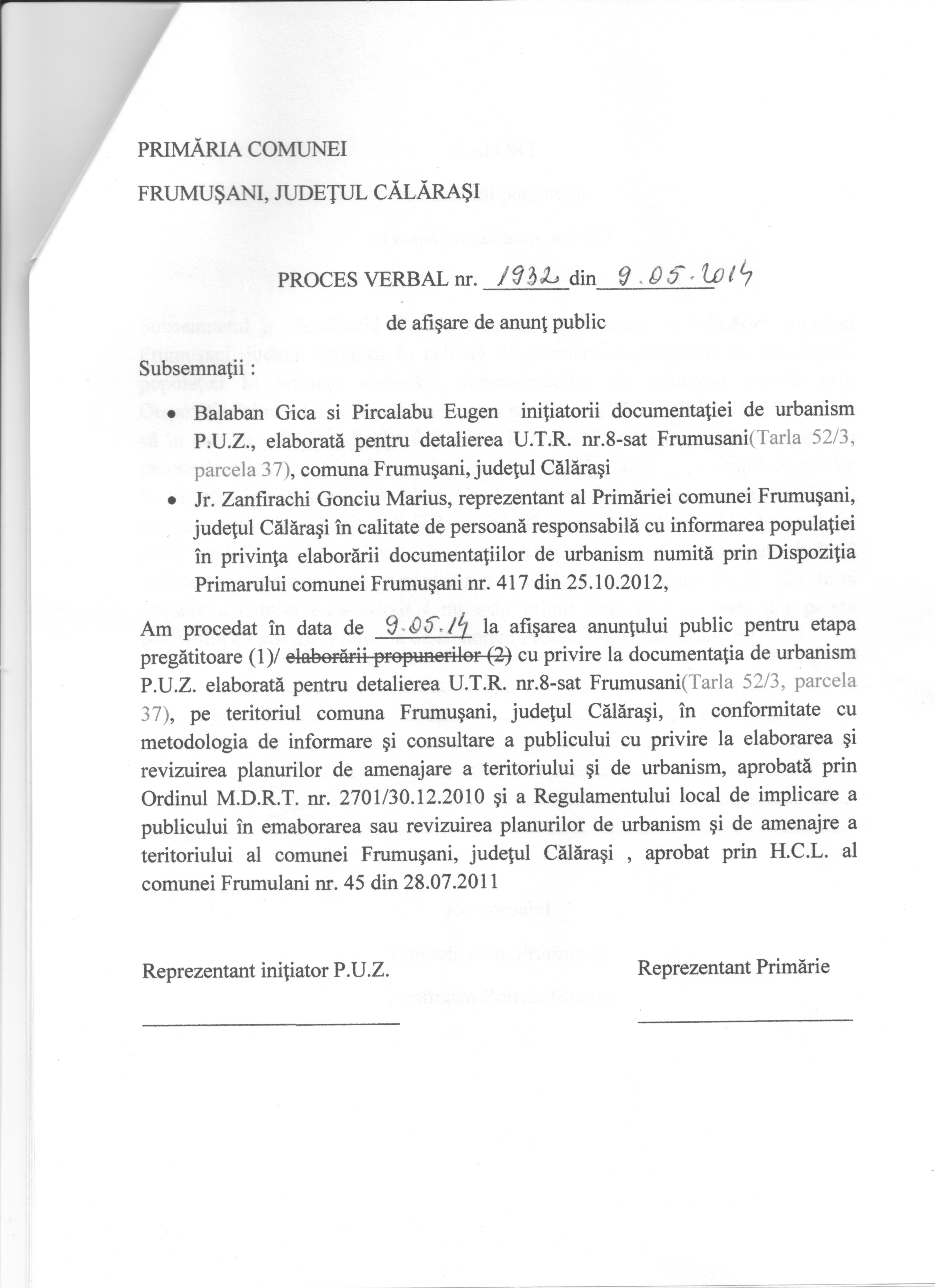 .Proiect de hotarare privind aprobare P.U.Z. „DETALIERE UTR 1 – SAT POSTAVARI” teren intravilan situat in