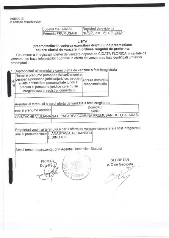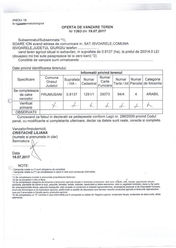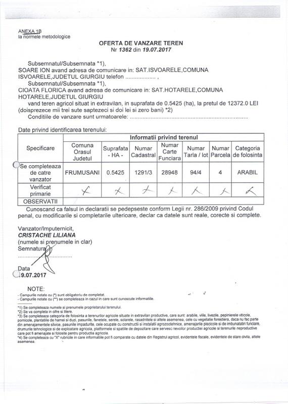Publicații si oferte Legea nr.17 - extravilan Registrul agricol 25 July 2017 Hits: 1673 Oferta vanzare teren si lista preemptori 19-07-2017 Print Email PDF Oferta vanzare teren si lista preemptori 19-07-2017 Prev Next