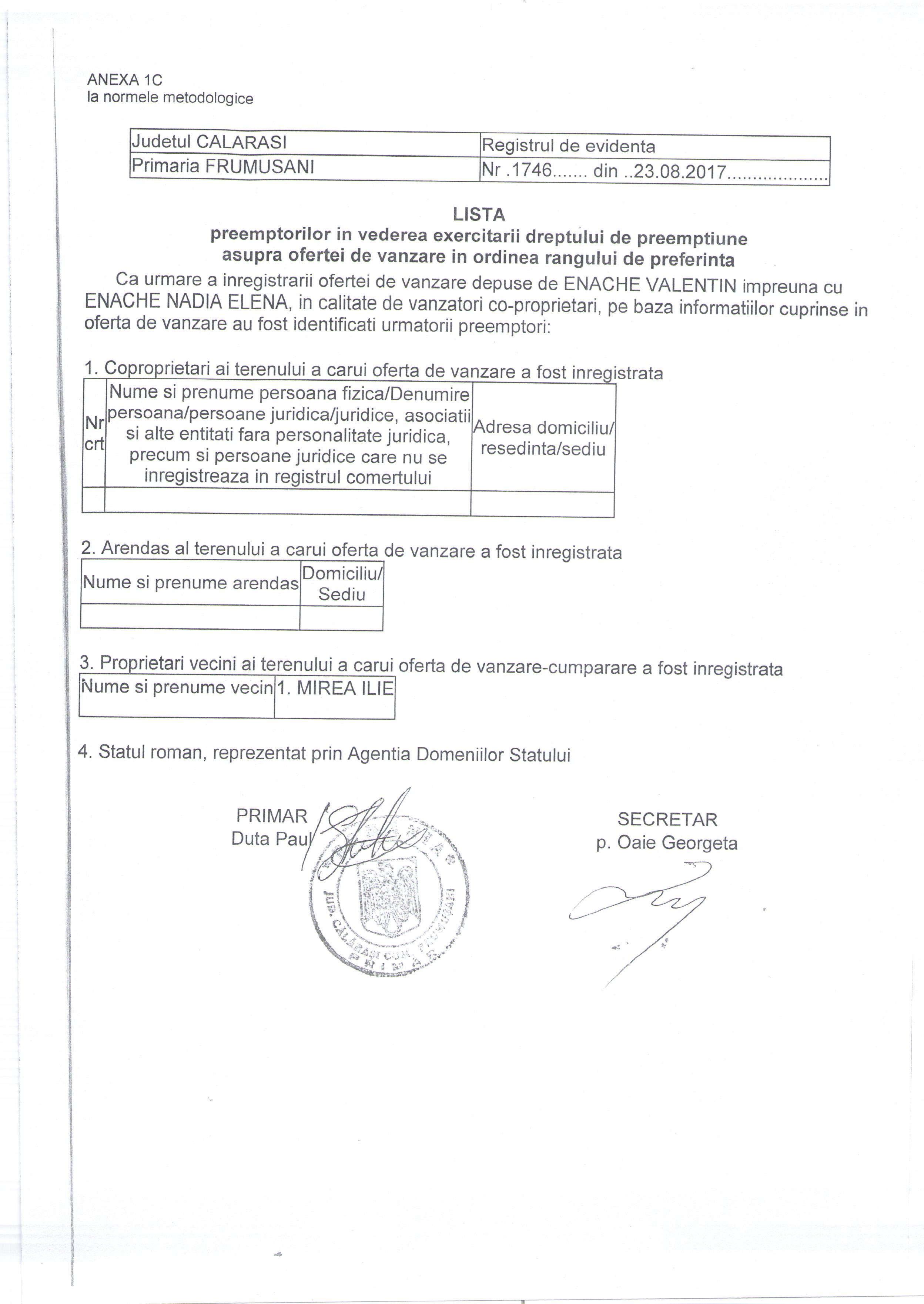 Publicații si oferte Legea nr.17 - extravilan Registrul agricol 25 August 2017 Hits: 1742 Oferta vanzare teren si lista preemptori 23-08-2017 Print Email PDF Oferta vanzare teren si lista preemptori 23-08-2017 Prev Next